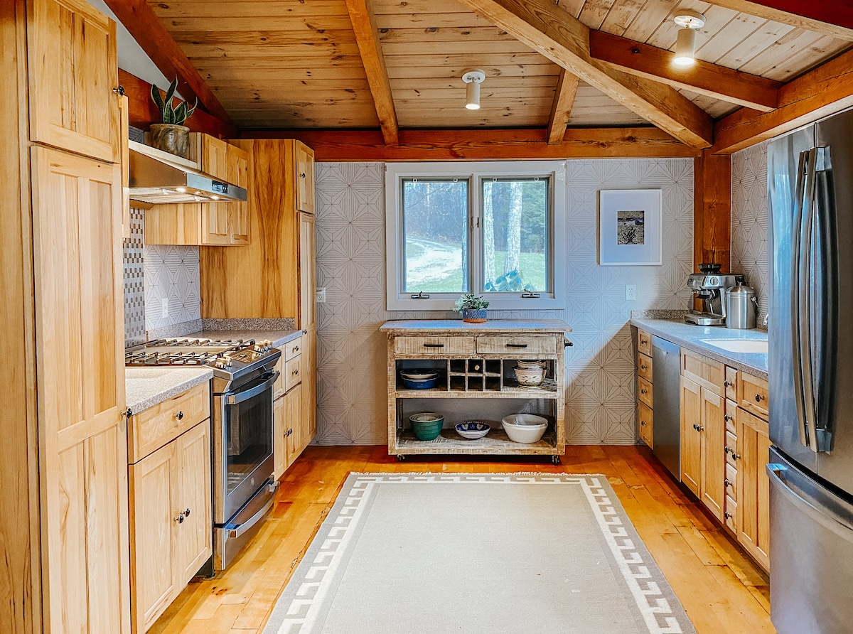 Featured in VOGUE and Maine Home + Design, this modern, handcrafted cabin offers calm Atlantic views, 150 feet of shoreline, and a private dock, perfect for morning coffee, launching a kayak, or watching seals, seabirds, and passing boats. Set among tall pines, it blends Nordic and Japanese influences in a space that is calm and composed. Interiors of wood, stone, lime plaster, and concrete form a grounded, quietly expressive, and sustainably built retreat. 1hr from Portland, but a world apart.