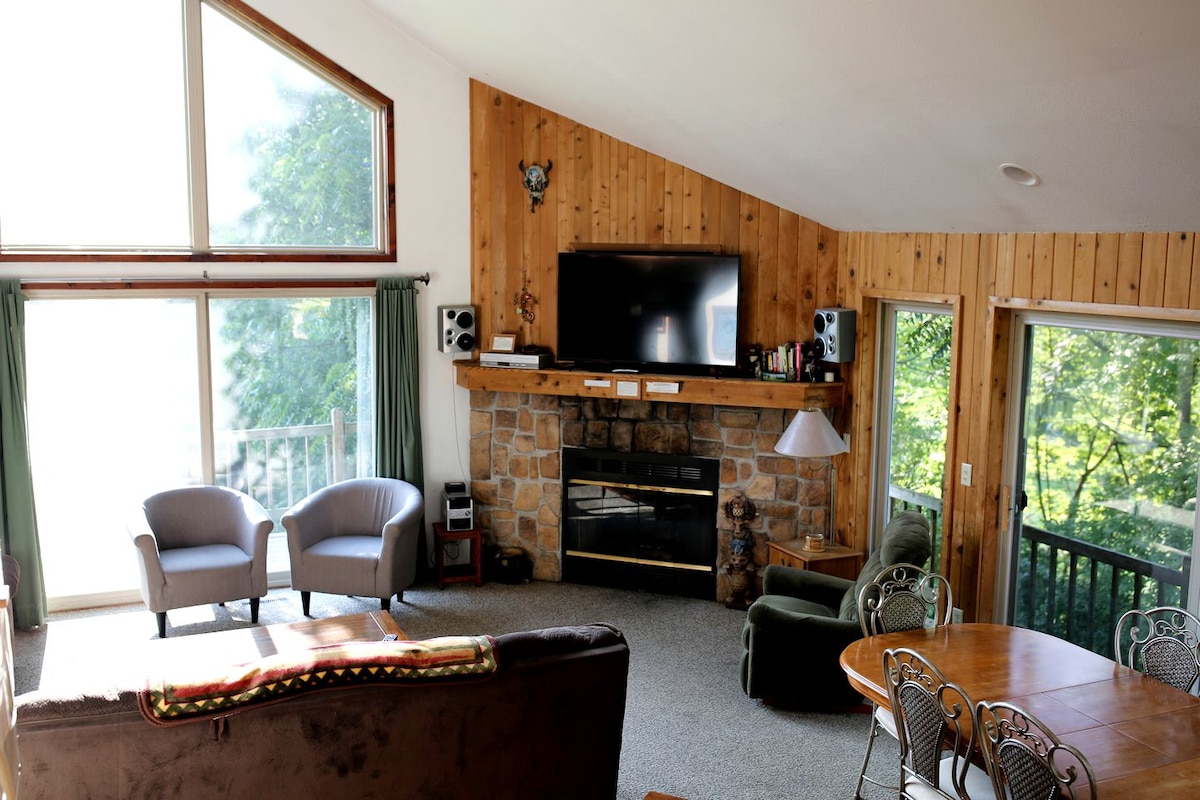 我們的小屋位於Jellystone Yogi熊營地和Three Bears Lodge旁邊。 草坪上有許多ATV和拖車的停車位。 客廳有新家具。65 吋電視,配有Superbox。 主樓層有2間配有標準雙人床的獨立臥室。 兩間房間都有電視/ Ruko 閣樓樓上有5張單人床和浴室。40英寸電視,配有Ruko、DVD播放機 設備齊全的廚房。洗衣機/烘衣機。 戶外烹飪的烤架。 如果您的團體人數超過10人,隔壁的別墅也可能可供預訂。