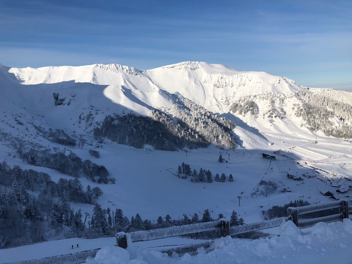 Volcane工作室於2024年全面翻修,距離Mont-Dore超中心200公尺,位於四樓,配有美麗的山區住宅的電梯。 房客可以欣賞朝南的陽臺,欣賞Puy de Sancy和Capuchin的美景。 私人停車位和儲藏室。 就寢區是一張140/190拉出式床,內置沙發。 您不需要每晚整理牀鋪,打開睡覺!