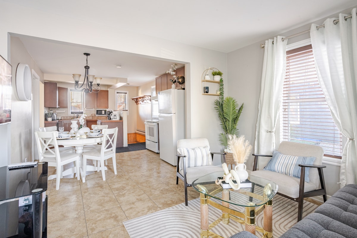 #CITQ 304712 有效期至 2026 年 4 月 30 日 位於我家半地下室的明亮住所,配有設備齊全的廚房。房子前面有獨立入口,保護您的隱私。中央島。客廳配有工作區、4K 電視、Netflix、無限 WiFi。寬敞的主臥室,配有電視、標準雙人床和單人沙發床。第二間臥室配有智慧電視、雙人床和單人沙發床。在房子的左側,您有自己的私人戶外區域,配有烤肉架和野餐桌