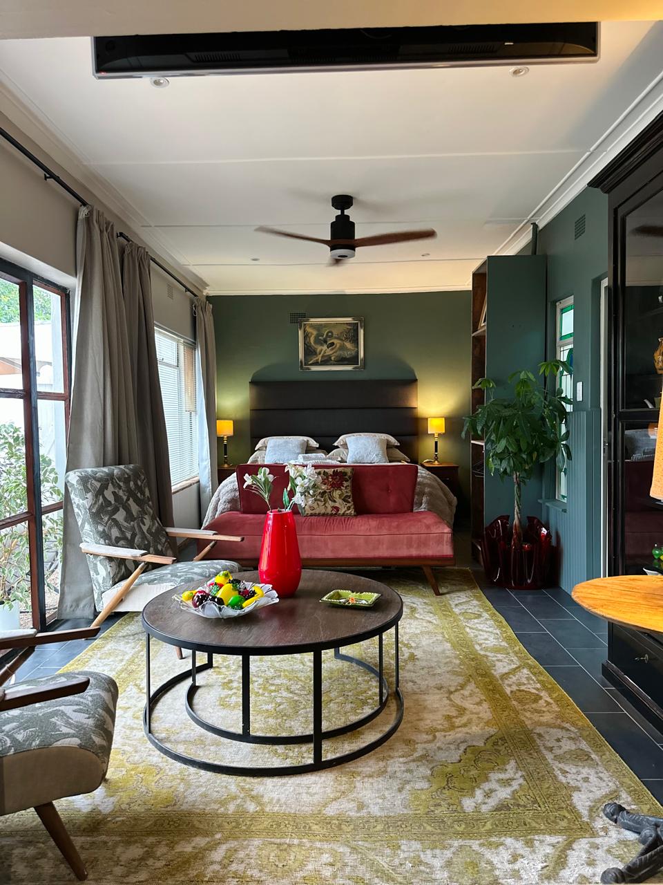 Estb 1835, the 2nd oldest home in Worcester is stylishly renovated and decorated. The historical garden has mountain views, friendly dogs and shade , ideal for relaxing or catching up with the mails . The comfortable private lounge, bathroom and bedroom have free Wifi and smartTV. Close to restaurants, coffee shops, KWV brandy cellar, olive-tasting ,hospitals, glass blowing and art studios . Ideal for athletes, tourists and business visitors. See Bo’s Bliss ,our adjacent prop , sleeps 4.