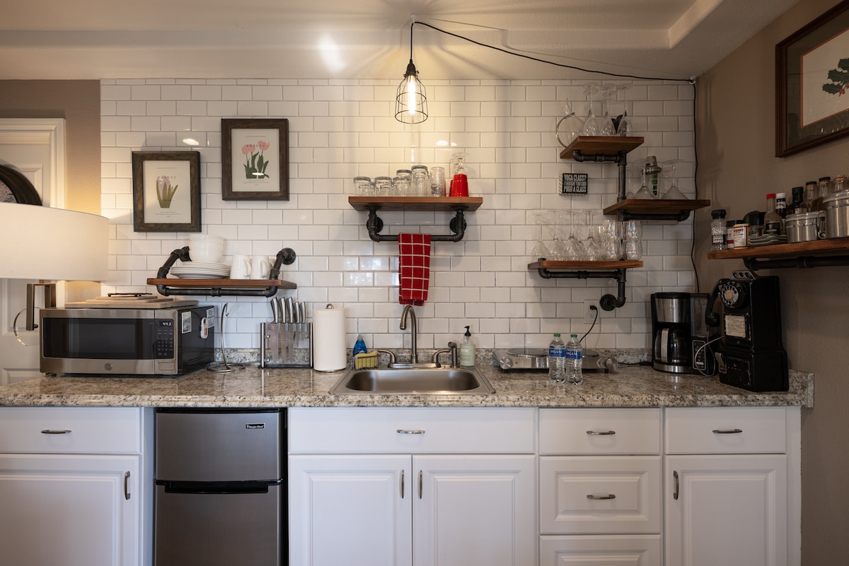 客用住房與我們的主要住所相連,但有一個獨立的外部入口。 內部由雙門隔開,兩側都可以上鎖,類似於相鄰的飯店房間。 後院由我們業主共用。 在您入住期間,我們友好的澳大利亞牧羊犬Gracie會迎接您! 入住期間,您可能會在院子裡看到我們。 歡迎隨時打聲招呼! 否則,我們會尊重房客的隱私。
