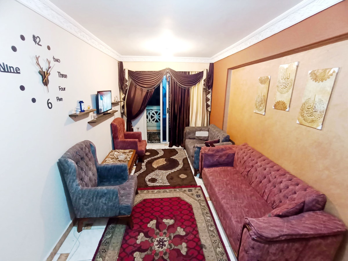 這間公寓非常適合我家庭和個人,如果沒有騷擾或不便,且鄰居非常受人尊敬,並且附近有服務,在阿拉伯海上交通學院附近和海邊,步行5分鐘即可抵達大海 公寓的一個特色是免費網路 房東在繼續提供協助方面的彈性 對日期和承諾的承諾