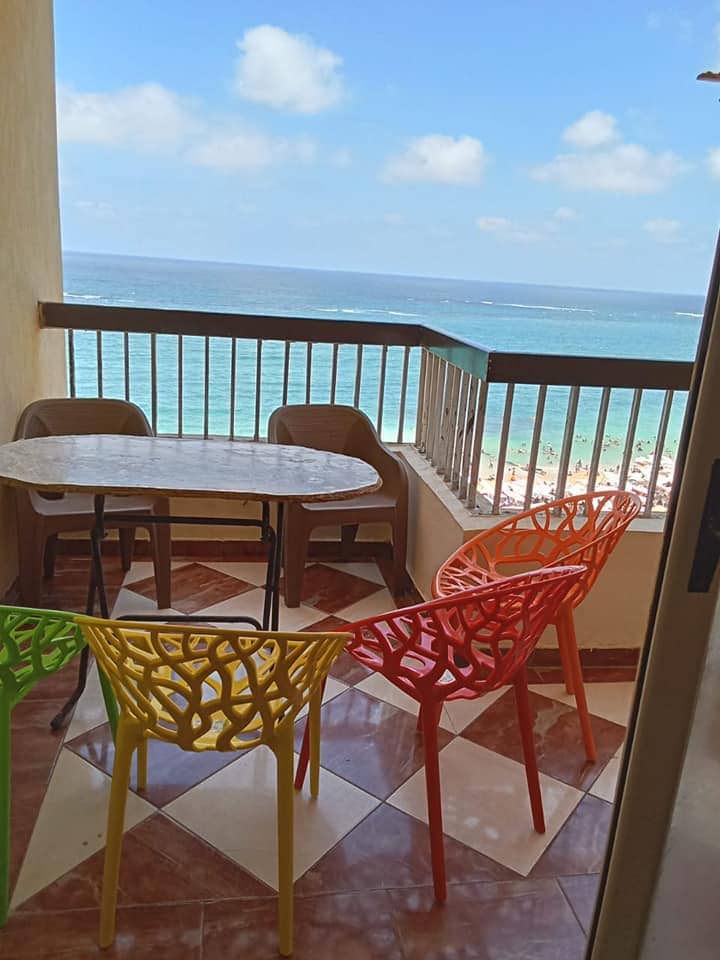六樓的公寓,可欣賞美麗的海景,有電梯,公寓有兩間房間,還有大型接待室和2間浴室,公寓有全空調,有Wi-Fi和熱水和洗衣機和爐子和一個完整的廚房,有工具和冰箱和微波爐和攪拌機,還有熨斗和熨衣板,還有一些娛樂,如國際象棋和多米諾骨牌和卡片,價格包括電費和網路消費,這間公寓僅供家庭租用