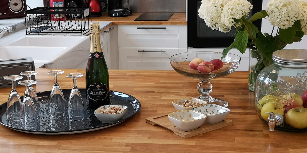 位於Vallée de la Marne的中心,距離巴黎90公裏,距離Reims和Epernay 55公裏,探索我們美麗而獨立的房子。 舊魅力和鄉村的寧靜融合。 它受益於現代舒適和光纖。 在花園中,您將享受寧靜的大自然。 我們迷人的葡萄種植村Chézy-sur-Marne非常適合2或3個家庭或一群旅客,為您提供所有必要的商店和SNCF火車站(巴黎東線)。