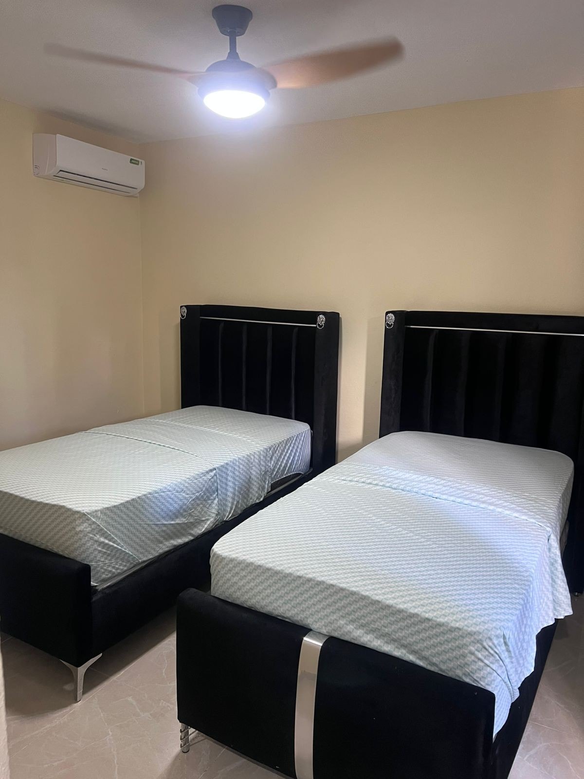 3 間臥室和 2 間浴室,全面翻新的 2 樓房屋。 全屋空調,所有臥室以及家庭/客廳都有空調。 全新的廚房,配有您度假所需的一切。公寓有熱水、Wi-Fi和智慧電視。可舒適入住6人,位於多明尼加共和國蒙特克里斯蒂鎮。