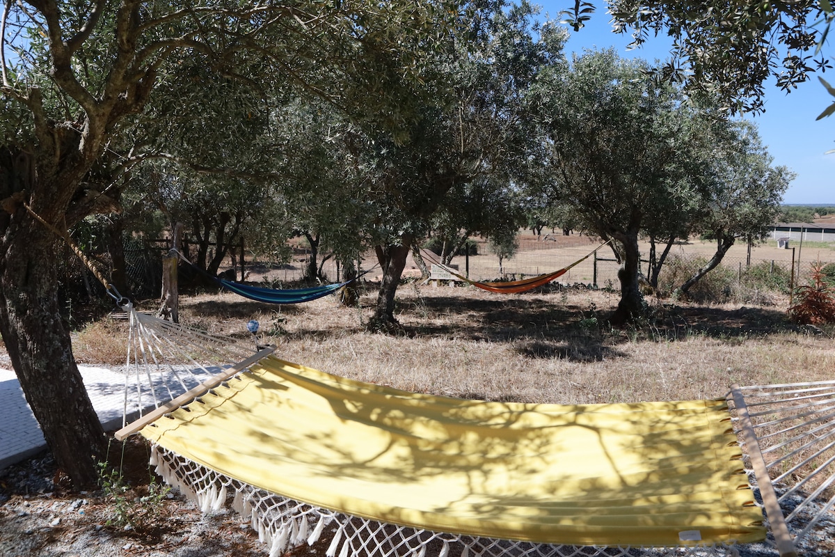 Alentejo 休閒度假屋,設有泳池 • 自然與日落 Alentejo安靜的鄉村旅遊。 是休息、約會、閱讀和欣賞壯麗日落的理想度假勝地。 坐落在2公頃的物業上,設有鹽水泳池、橄欖樹陰影下的吊床,以及大面積的步行、騎自行車和觀賞大自然的區域。 非常適合那些尋求和平、隱私和與真正的Alentejo聯繫的人。 這裡歡迎寵物,帶上你的寵物吧。 AL: 150475