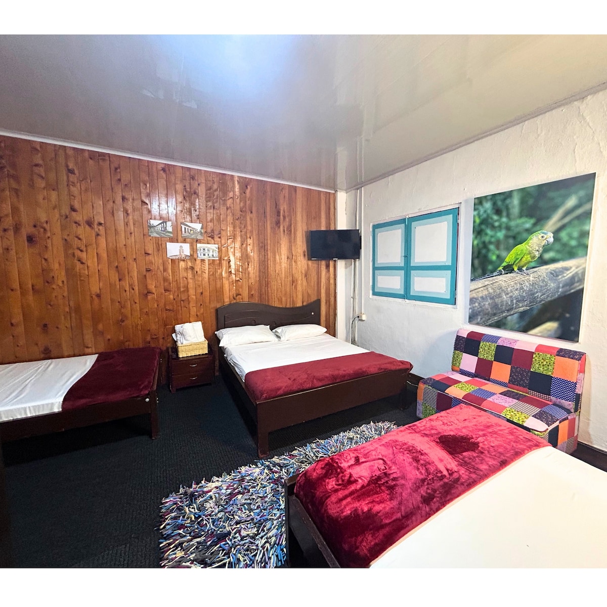 Habitación familiar ubicada en la reconocida Finca Turística Villa Bernal. Habitación con capacidad hasta de 3 personas (2 camas) Baño privado, TV. Disfrute de un baño en nuestra piscina mientras contempla los famosos atardeceres dorados del Paisaje Cultural Cafetero. Estamos a poca distancia en auto a Quimbaya, Armenia y Pereira, permitiendo fácil acceso a parques temáticos y más. Disfrute de la belleza y la paz de Ulloa, el corazón cafetero del Valle.