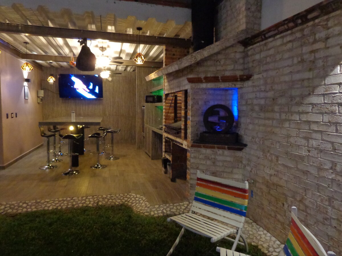 非常寬敞明亮的閣樓式房屋,四周環繞著樹木、花園、露臺、3 間臥室、撞球桌、烤肉架、5 個車位的私人停車場,距離米西翁酒店 (Hotel Misión)、高爾夫俱樂部和鬥牛場僅兩個街區。 我們住在隔壁的房子裡,為您提供服務。 請勿舉辦人數眾多或吵鬧的派對。 歡迎回家