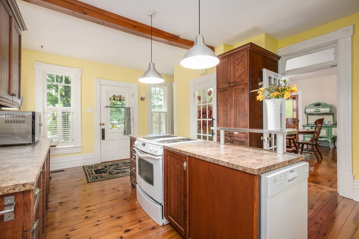 Built in 1864, you will be charmed by this Victorian house that offers five (5) bedrooms, four (4) bathrooms and a fully equipped kitchen. For group above 14, there is a dormitory in the basement that can accomodate up to 4 peoples (4 twin beds or 2 kings) and a private bathroom. Rest and relax in this ancestral home that offers a peaceful environment, perfect as a remote office with reliable, unlimited Wi-Fi or a much needed retreat with plenty of family activities.