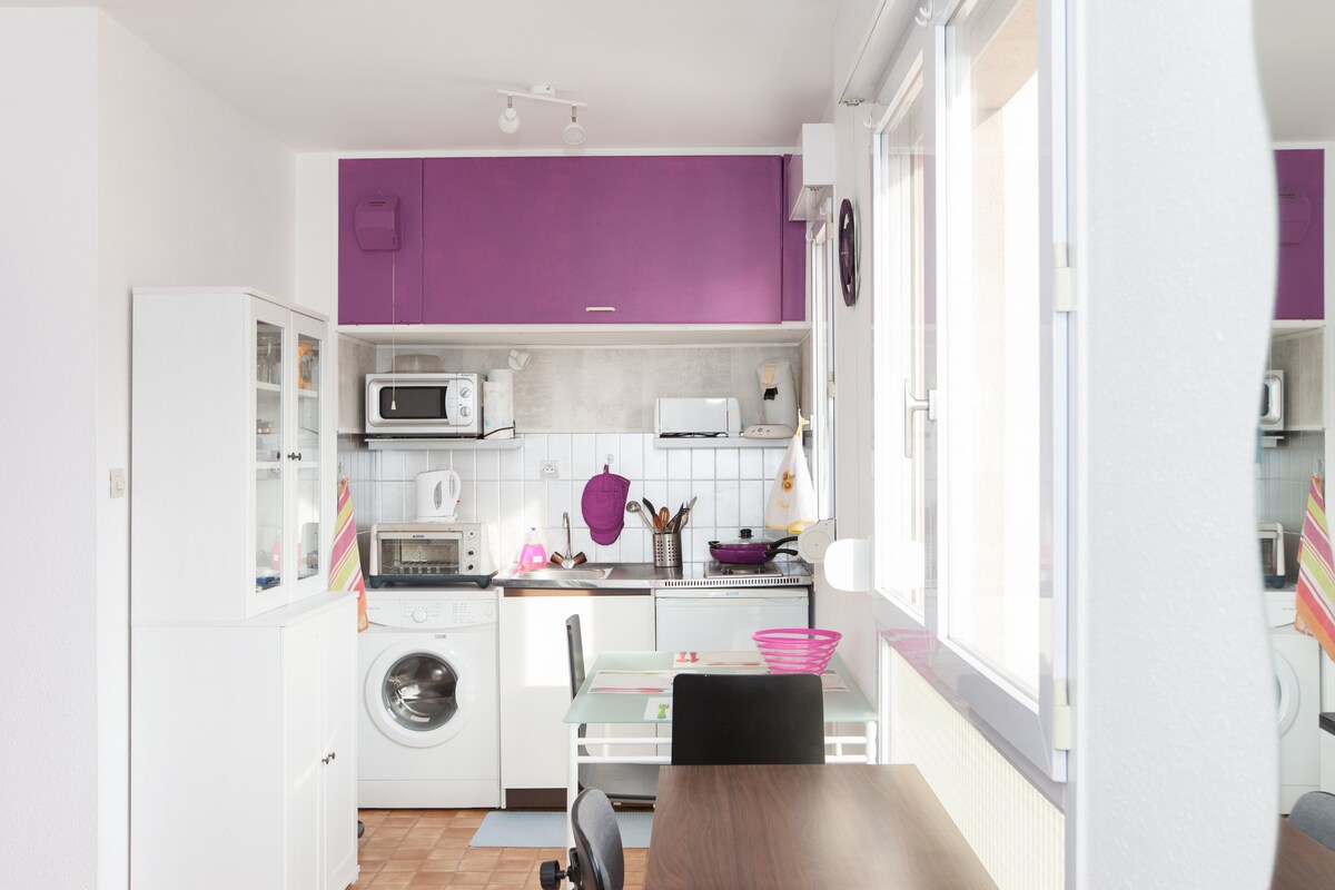 舒適的公寓,2 間廚房,可容納 4 人,全新翻修,距離梅斯 (METZ) 中心、火車站、龐畢度中心 (Centre Pompidou)、博物館 2/3 公里。 住宅內有停車位。臥室配有雙人床。 客廳配有快速型沙發床、非常好的床墊、電視和網路 設備齊全的廚房、洗碗機、開放式客廳。 淋浴間配有大淋浴間和洗衣機。 大陽台 提供毛巾和床單 禁止吸煙,禁止攜帶寵物。禁止舉辦派對。 時間安排彈性。