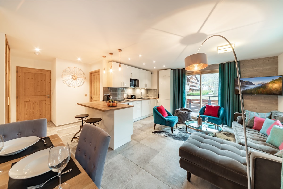 在這個設計時尚又安靜的空間中享受極佳的水療設施,好好放鬆身心。這間 2 間臥室、一樓公寓非常適合朋友或有年長孩子的家庭。裝潢精美,設備齊全,可讓您在山上享受滑雪假期,交通便利,停車位充足。靠近Flegere的滑雪纜車,步行即可抵達美麗的徒步和自行車道。在滑雪場度過艱難的一天後,您可以在溫水泳池中享受游泳,或享受按摩浴缸、桑拿或蒸汽。
