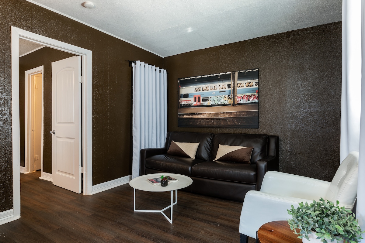 The Rustic (# 3):寬敞、時尚、設計完美的單間公寓,位於新翻修的建築群中,有7間獨異的最先進公寓,全新的一切。 The Rustic是2間大型單間公寓之一,配備全功能廚房和獨立的起居和睡眠區域。 豪華的加大雙人床墊和寢具;溫馨舒適的裝飾;充足的照明;智慧科技;全新的電器。 令人驚嘆的中心街區,距離休斯頓最好的餐廳和夜生活僅幾步之遙...