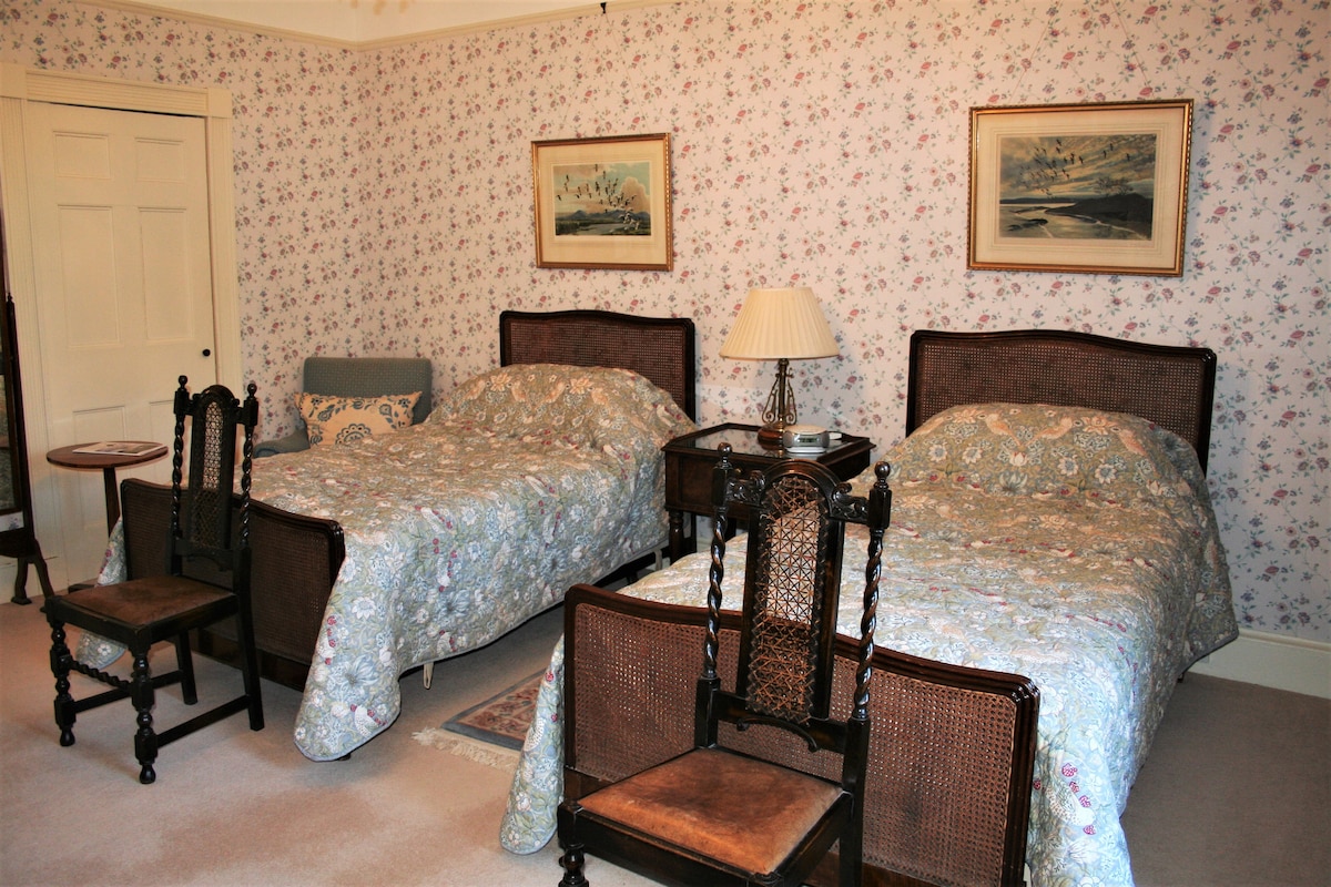 樓上溫暖的房間,配有舒適的加大雙人床,套房配有淋浴間。 此房間還有一張單人床,如有需要,可鋪設。包括咖啡、茶等,以及一個粥鍋/麥片/水果/吐司早餐。飯店內的酒吧和餐廳(不同的組織)在星期三至星期日開放,最好直接透過電話預訂餐點,一旦您完成Airbnb預訂,我們可以將他們的電話號碼傳給您。對於週一至週二的晚餐,我們提供Oakhouse Foods冷凍全餐。