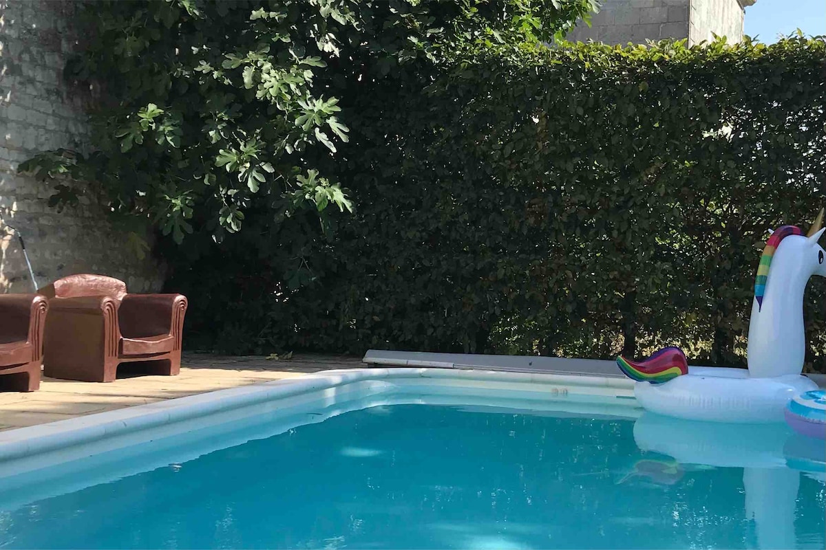 1 至 14 人。非常舒適的房子,配有游泳池、露台、用餐區和大型烤架,非常適合朋友或家庭入住。大草坪可供玩球類遊戲、放風箏或其他活動。花園內有吊床、滑梯、鞦韆和彈跳床。位於一個村莊,距離 Futuroscope 和羅亞爾河城堡 45 分鐘,有 5 間可容納 2 至 5 人的臥室,環境安靜。禁止吸煙,禁止攜帶動物。我會一點法國手語。