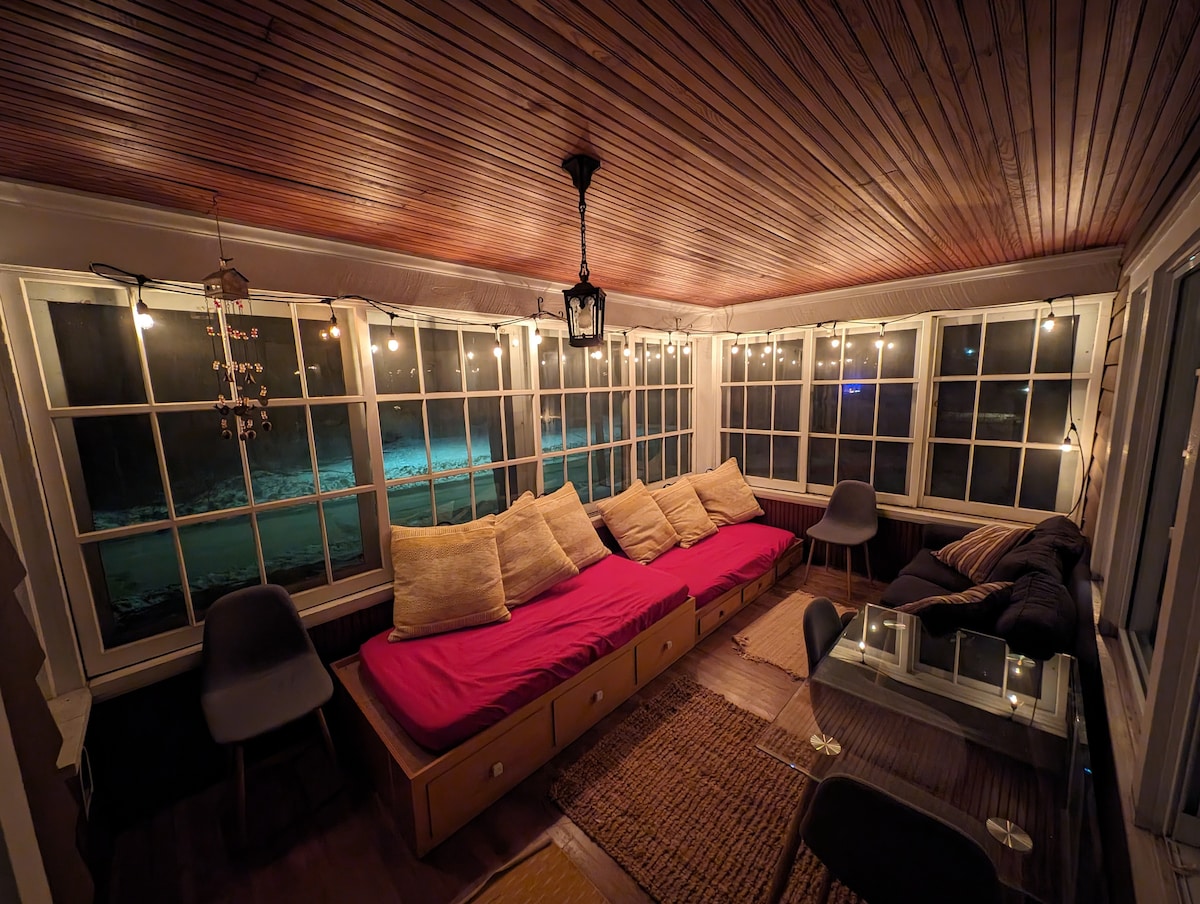 Just steps away from Lake Flower & popular restaurants this cabin is located just 5 minutes from downtown Saranac Lake and 15 minutes to Lake Placid. Enjoy lake views and morning coffee from your front porch or cuddle in your own mini leanto. In the evenings, enjoy cocktails in the screened in gazebo, and toast marshmellows around the fire pit. On rainy days watch movies in the cozy basement tv/game room. Just steps away from Casa Del Sol, blue line brewery, & Aldi's you'll never need your car!