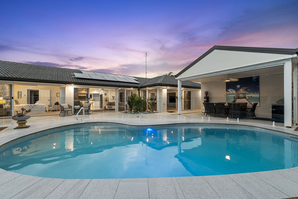 這間寬敞的4間臥室2間浴室(一間全新的浴室)房源非常適合2個或更多家庭、同事或團體入住並享受陽光海岸的一切。 擁有Mooloolaba最大的私人泳池,步行即可抵達海灘,您可以決定是想在海洋或泳池旁放鬆身心。 這間賓至如歸的柔軟海岸感覺,配備所有現代化便利設施,確保您能夠享受假期。