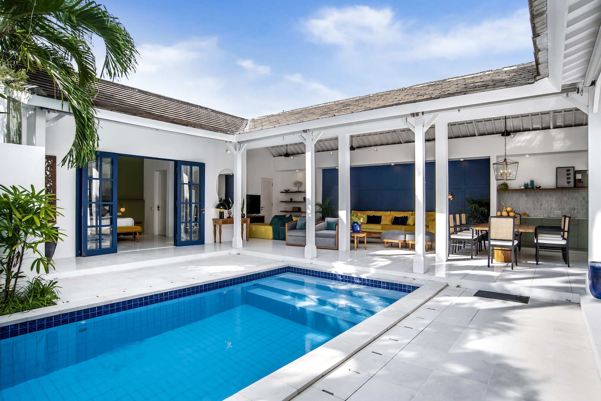 入住我們全新的 1 間臥室別墅,配有私人泳池,位於 Canggu 中心的絕佳位置,這是情侶或獨遊旅客的完美別墅,他們喜歡探索 Canggu 的著名景點。步行3-5分鐘即可抵達很棒的餐廳、商店、健身房、共同工作空間、普拉提、咖啡廳和酒吧。距離著名的海灘僅幾分鐘路程,如Nelayan、Batu Bolong、Canggu Beach,這間別墅配有豪華的加大雙人床、套房浴室、廚房、泳池、客廳和開放式起居空間,可在私人泳池旁放鬆身心