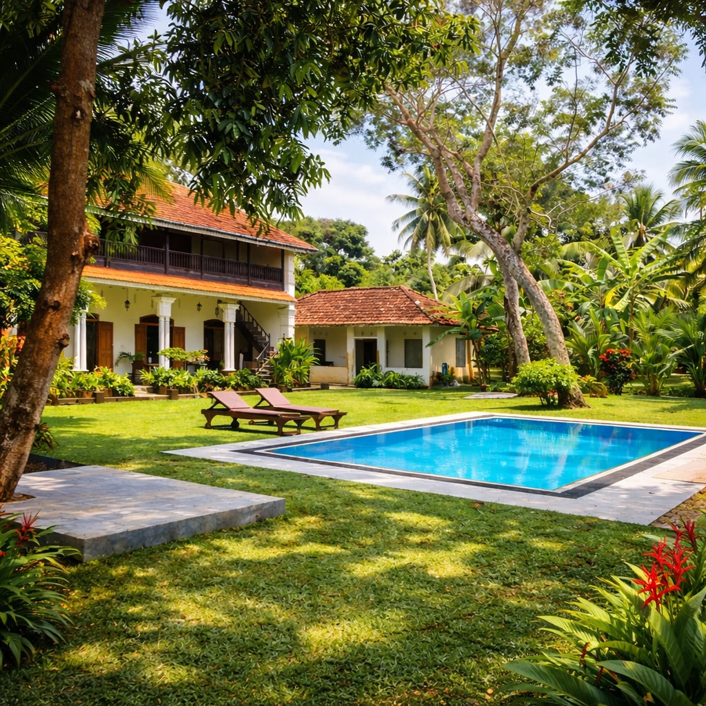 French-designed luxury villa, just 40 m from Rathgama Lake surrounded by 9 acres cinnamon plantation. -Features 4 elegant bedrooms (3 with AC), teak floors, a beautiful solid Acacia wood frame, and Bali stone interiors and exteriors. -Enjoy a teak and Italian marble kitchen, Indonesian teak furniture, and French cotton curtains for a cozy, refined feel. New in 2025 — explore videos of Cannelle Lake Villa on YouTube and Google Maps.