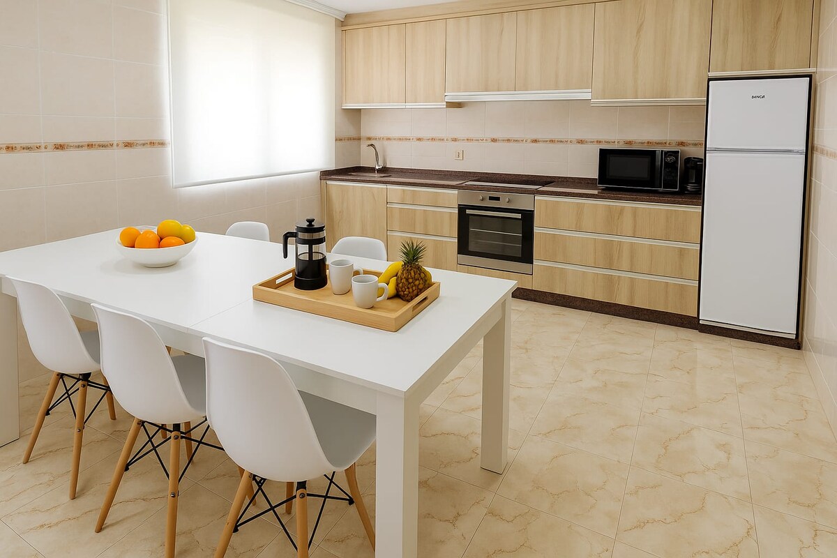 VUT-CO-009788 許可證 入住這個寧靜的住宿,與全家人一起放鬆身心 距離海灘和市中心只有 5 分鐘路程。 它有Wi-Fi、2臺冰箱、微波爐、Dolce Gusto和義大利咖啡機、洗碗機、冷凍庫、洗衣機、烘乾機、吹風機、淋浴盤、浴缸、客廳和主臥室的電視,以及所有房間的暖氣。