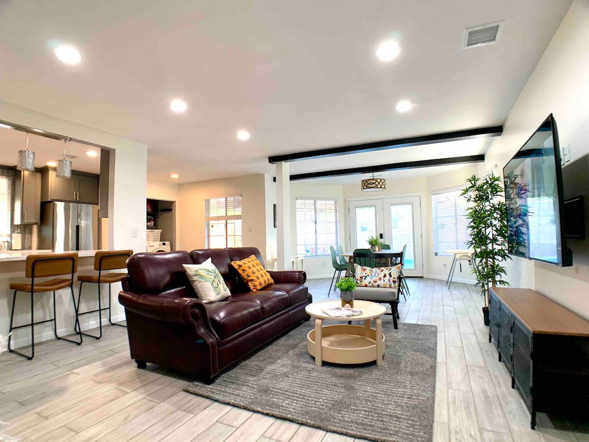 Enjoy your stay at this farmhouse style 2 bed 2 bath condo! Extremely clean and well maintained, this space is conveniently located a few minutes from the downtown area, Central Plaza, and walking distance from Riverside's well known Mt. Rubidoux Hike; a 1-mile trek that gives a stunning view of the entire city. There is a park across the street that kids love which also has a nice walking path. The neighborhood is very quiet and peaceful. Access to Wifi, washer/dryer, 2 car garage, and more!