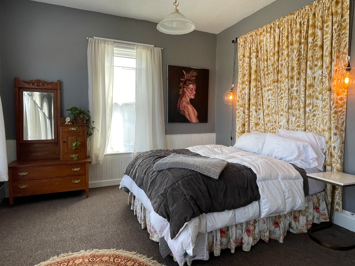 寬敞的閣樓公寓,位於市中心、伊利諾伊學院、醫院和球場的中心。 全套廚房, 4人用餐空間,充足的舒適座位。 這是樓上的閣樓公寓,有20個臺階。 路邊停車位、網路和電視 兩間臥室均設有遮光窗簾。 入住期間,請隨意使用藝術品和手工藝用品。 這是一棟古老歷史建築中的普通高層公寓。 雖然不是「新奢侈品」,但寬敞舒適!