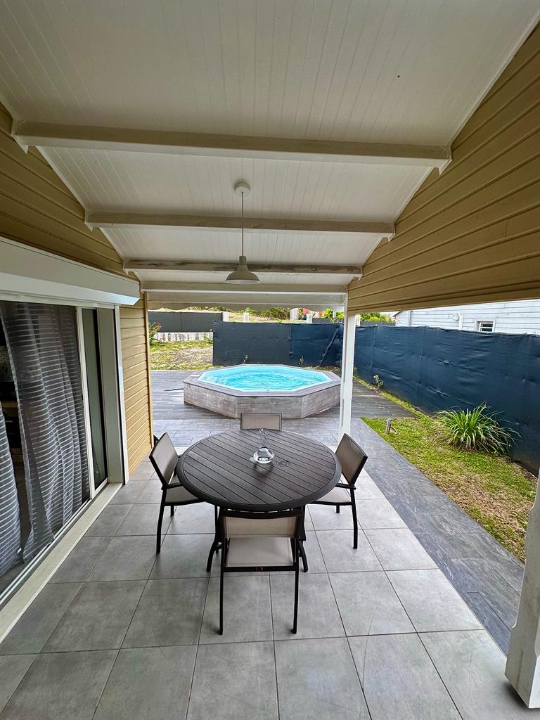 Maison bois de 50 m2 avec terrasse, 4 personnes maximum, piscine de détente privée avec buses spa dans un quartier résidentiel paisible situé à la campagne. À 5 mn du musée Edgar Clerc, 8 mn du centre commercial Baie Side, 15 mn de la Plage de l'Autre Bord & 20 mn de la Porte d'Enfer. Détendez-vous dans ce logement calme et élégant vous y serez les bienvenus. Logement non-fumeur. Les fêtes sont interdites. Pas de décoration pour les anniversaires. Piscine non chauffée. ARRIVÉE A PARTIR DE 15H00.