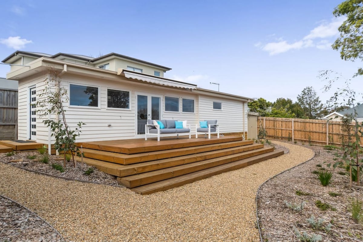 安靜豪華的旅居。在Fisherman 's Beach和Mornington Main Street附近的完美情侶度假勝地(約15分鐘)。 住宿包括開放式休息室、廚房、用餐區、雙人臥室和帶洗衣設備的淋浴間。 露臺門通往私人露臺,您可以在陽光下沐浴,或在可伸縮遮陽篷下躲避。分體式供暖和制冷。