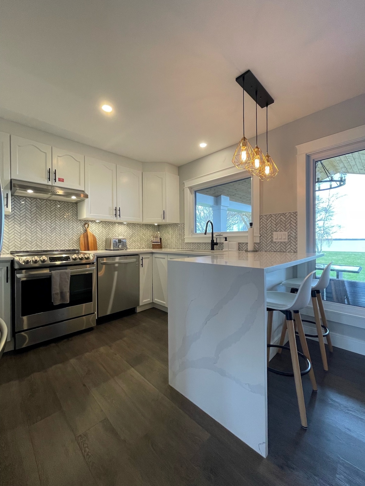 隆多灣的私人碼頭和水上通道! 我的海灣度假屋是一間現代化的豪華海濱房源,有4間臥室和2間全功能浴室。 房子有開放式概念的客廳/廚房/餐廳區域,配有現代化的瓦斯壁爐/電視。 享受後院的室外露臺,欣賞海灣的驚人景觀,同時享用美味的晚餐。 跳下碼頭游泳或釣魚。 備有充足的廚房、瓦斯燒烤、室外用餐區、電視、網路、淋浴間和浸泡浴缸。
