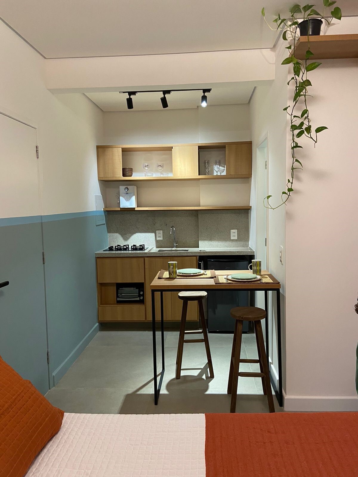 O Apêzin é um loft com a cozinha americana, com tudo o que você precisa dentro de uma casa. Ele é luminoso , tem ar condicionado e blackout nas janelas. Muito aconchegante, com uma smart TV 43" e internet fibra ótica 500 mega. O colchão é bem confortável de ótima qualidade, com lençóis 200 fios de algodão. Ofereço toalhas também. O chuveiro é elétrico. O forno é gás. Tem mercado e estacionamento rotativo embaixo. Para qualquer dúvida, basta me mandar uma consulta e te responderei rapidamente.