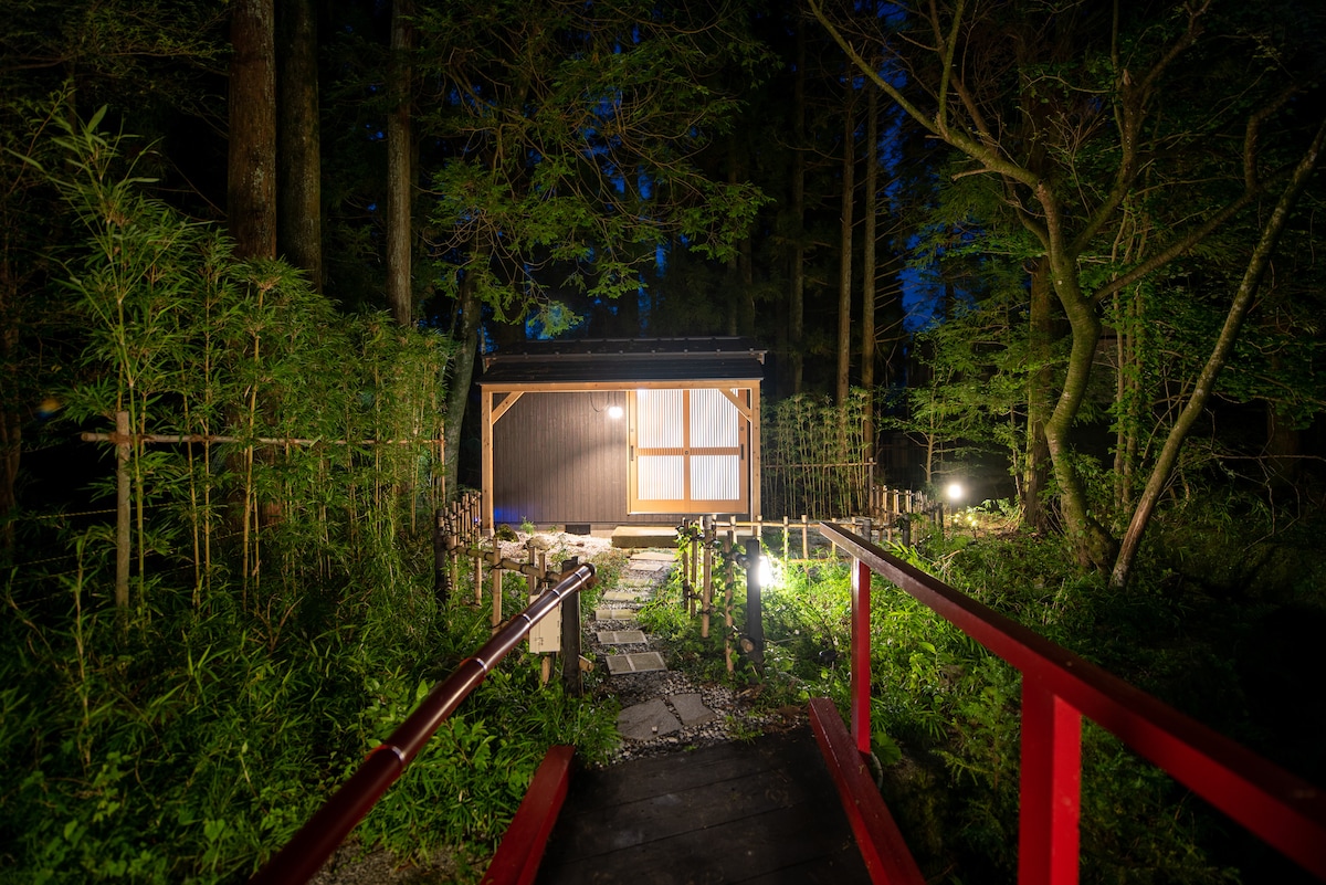 A secluded villa with a sauna surrounded by nature. Located about 5 minutes by car from Hakone-Yumoto Station, it's a quiet hideaway in the forest. Featuring a barrel sauna with a half-moon window, fresh mountain spring water, and relaxation under the starry sky. Perfect for sauna enthusiasts, with options for BBQs and campfires. Enjoy precious moments with loved ones, whether lively or serene. Experience "silence" away from the city, immersed in nature.