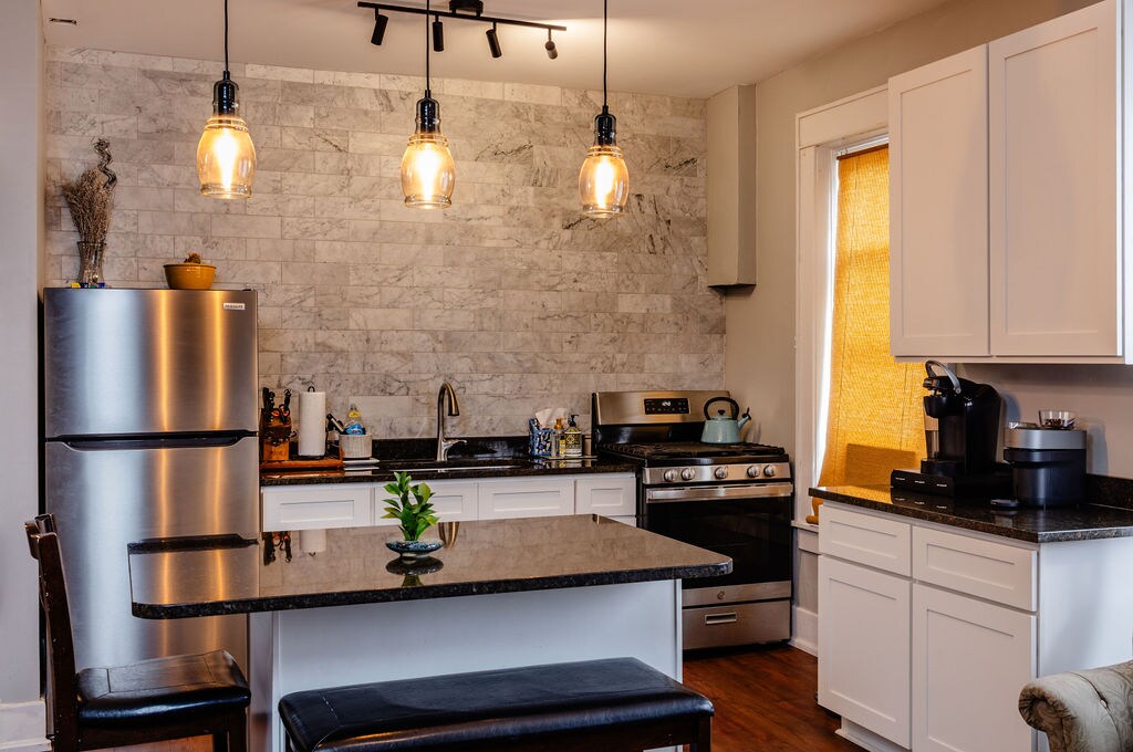 完美的市中心體驗。 免費停車位 -步行即可抵達您需要的一切 餐廳、娛樂、藝術、文化、綠地、休閒等餐廳、 在鐵路步道、Decker 's Creek、The Mon River和Ruby Amphitheatre的遺址內。 -距離州際公路3英裏(經過? ) -適合家庭入住 -距離WVU羅馬競技場2英裏(運動迷) -二樓公寓 -活動空間可應要求提供