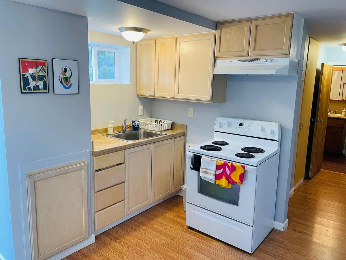 歡迎來到您的第二個家!您可獨自享有整套客用套房。它位於我們家的下層,通過我們美麗的後院有獨立入口。在劇院房間和配備熱盤、微波爐和迷你冰箱的小廚房享受您最喜愛的節目。 我們去年剛生了一個小孩。雖然我們努力維持安靜,但您可能會在白天聽到嬰兒咯咯笑或輕柔腳步聲的歡樂聲音。