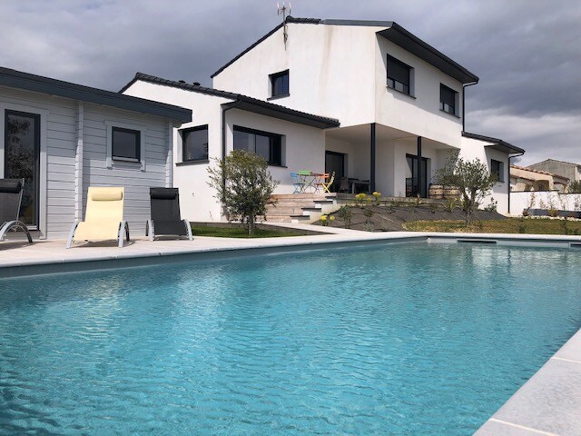 Vous apprécierez mon logement pour le confort. Piscine privée, jardin clos, terrain de pétanque, barbecue et plancha sont à votre disposition. Mon logement est parfait pour les couples ou les familles. Les compagnons à quatre pattes sont interdits dans l'enceinte piscine.