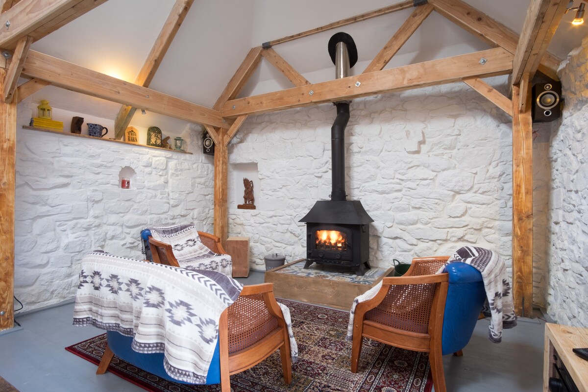 Beautiful timber/stone barn c200 yrs old renovated in 2015 to a high standard, set on an organically/permaculture inspired smallholding in countryside close to historic town Athenry. Featuring a large double bedroom with 4 poster bed, a sleeping loft, suitable for children/young adults. Fully fitted Kitchen. Contemporary Shower room with Compost Toilet. We have a wood-fired sauna and cold shower spa area available for guests on one* night of your stay, subject availablity/arangement.
