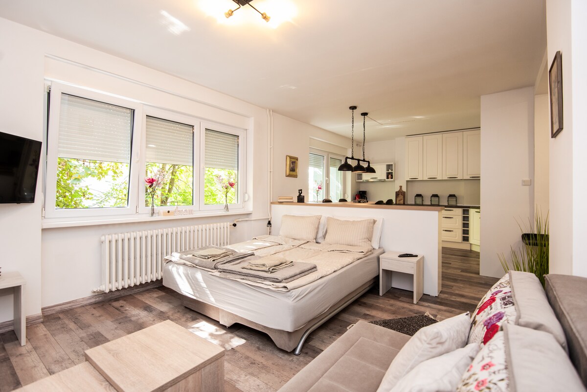 這個獨特而時尚的空間建於奧匈帝國時期,最近已全面翻新。 這是位於市中心的薩拉熱窩寶石,步行即可抵達餐廳、商場、電車站和夜生活。 如果您來這裡享受這座城市,這裡非常適合您,溫馨舒適的氛圍會讓您感到賓至如歸。 您可以在牀上享用自己的咖啡和早餐,下午在露臺上享用一杯葡萄酒。 非常期待你的到來!