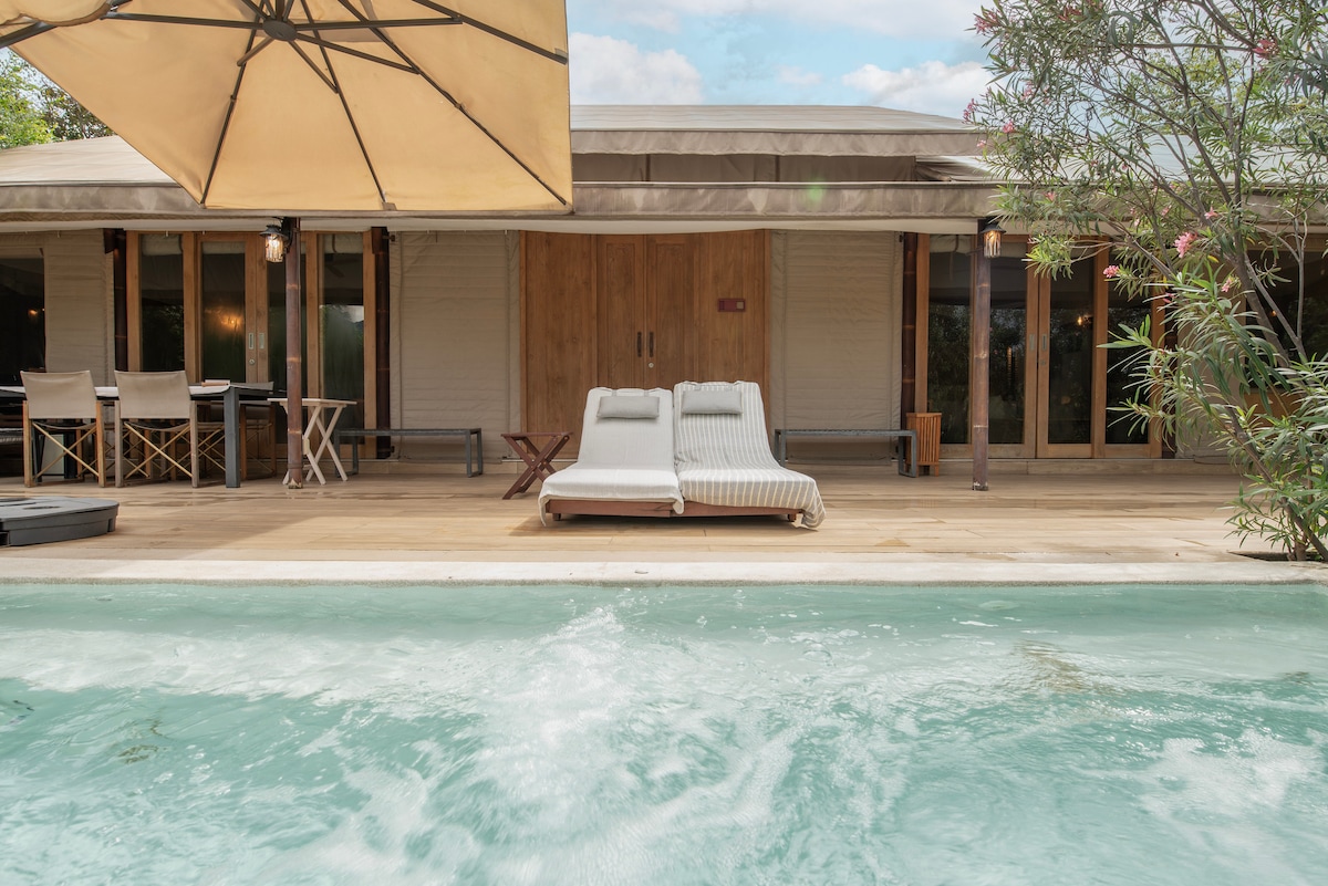 歡迎來到我們的山景別墅,這是這個寧靜的莊園中的三座別墅之一。 四周都是綠意盎然和新鮮空氣,真正的大自然度假勝地。 你將獲得以下好處理: • 🛏️ 兩間臥室,每間都有一張加大雙人床 • 🛋️ 寬敞的客廳,配有沙發床和🎤卡拉OK • 🔥 私人桑拿和❄️冷水浴,深度放鬆 • 可欣賞山景的🌳後院 共用空間包括: • 🏊 泳池 • 🍳 戶外廚房 • ⛳ 迷你高爾夫球場 • 🎱 撞球桌 • 🔥營火和舒適的室外區域