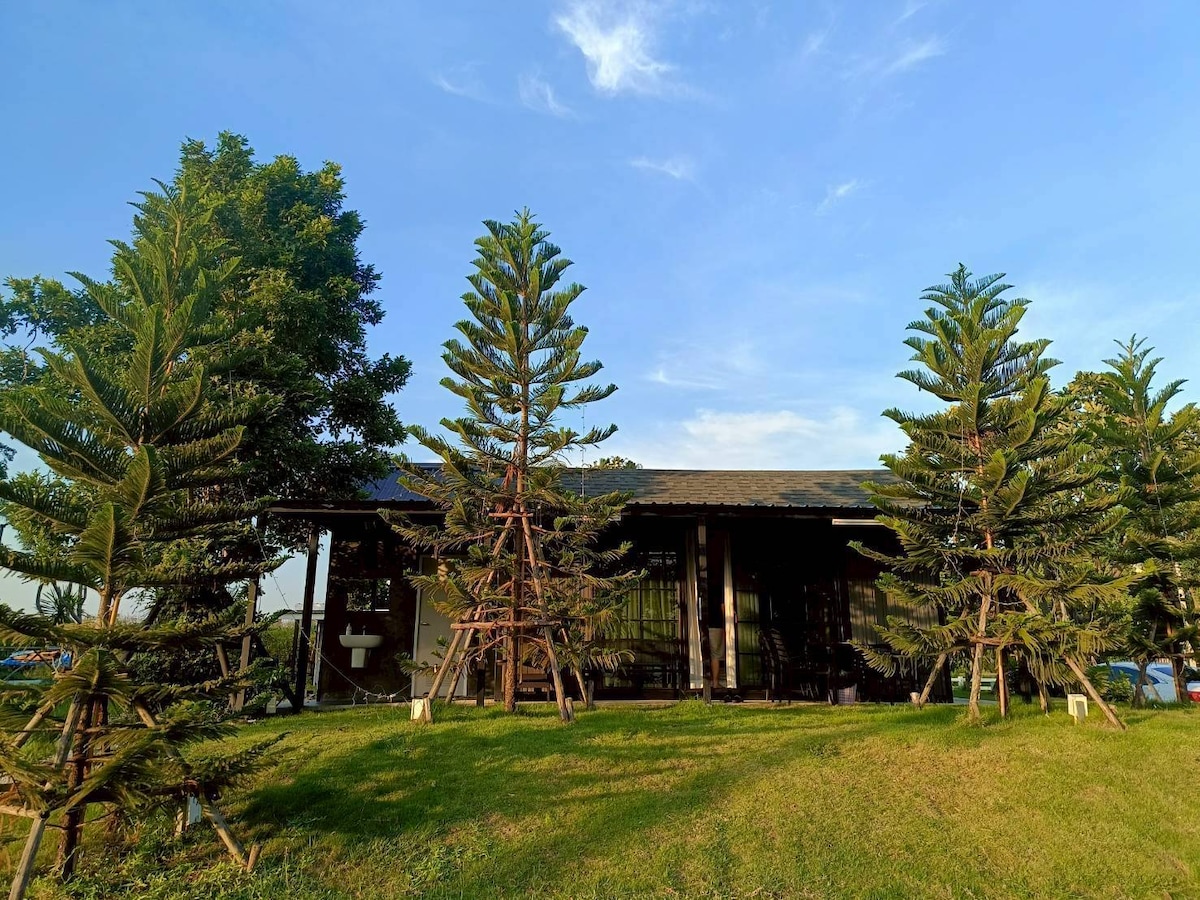 「一個讓你最接近大自然的地方。」 一間古樸的泰式高腳屋坐落在綠草如茵的山丘上,俯瞰河流彎道。 無論您在房子的哪個地方,都可以無限期地聽到流水聲,在河邊放鬆身心,這是真正獨一無二的。 我們堅信當地種植的樹木應該被保護。 這種信念也傳遞給每位建造這個設施的建築工人。