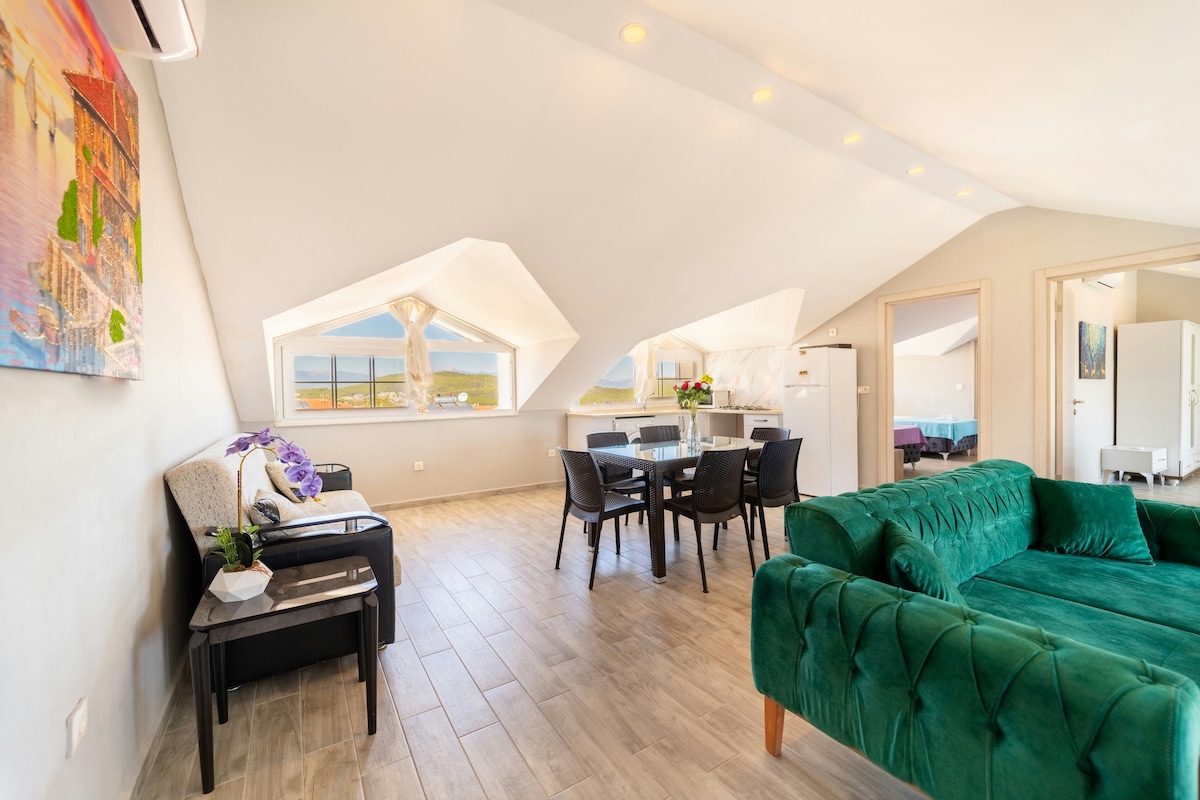 此房源位於費特希耶附近的奧魯登尼斯。 公寓同時提供海景、山景和城市景觀。 我們放置了全新的家具。 步行前往市中心僅需6分鐘,那裡有Ölüdeniz的所有酒吧和餐廳。 搭乘巴士5分鐘即可抵達奧魯德尼斯海灘, 12分鐘即可抵達費特希耶鎮。 有自然通風加 每個房間都有空調。 距離海灘最近的Airbnb之一。不允許私人公寓靠近海灘區域。