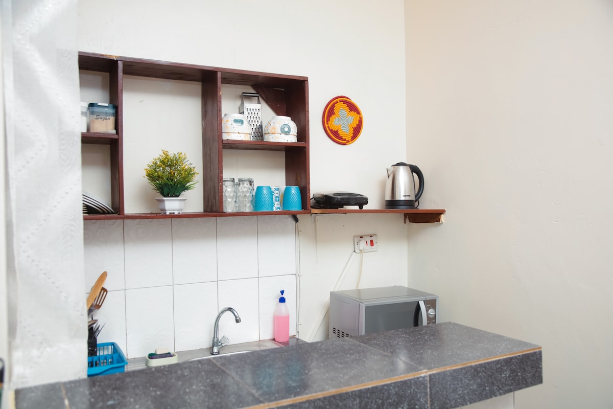 舒適的單臥室房屋,配有私人花園和戶外休息區,可俯瞰維多利亞湖(日出景觀)。 寧靜的綠洲,但位於市中心,靠近餐廳和商場(步行約15分鐘即可抵達Acacia Mall或Lugogo Mall )。 設備齊全的廚房、新裝修的浴室、客廳、工作空間、WiFi和洗衣機。 清潔人員每週會來3次,方便你使用。