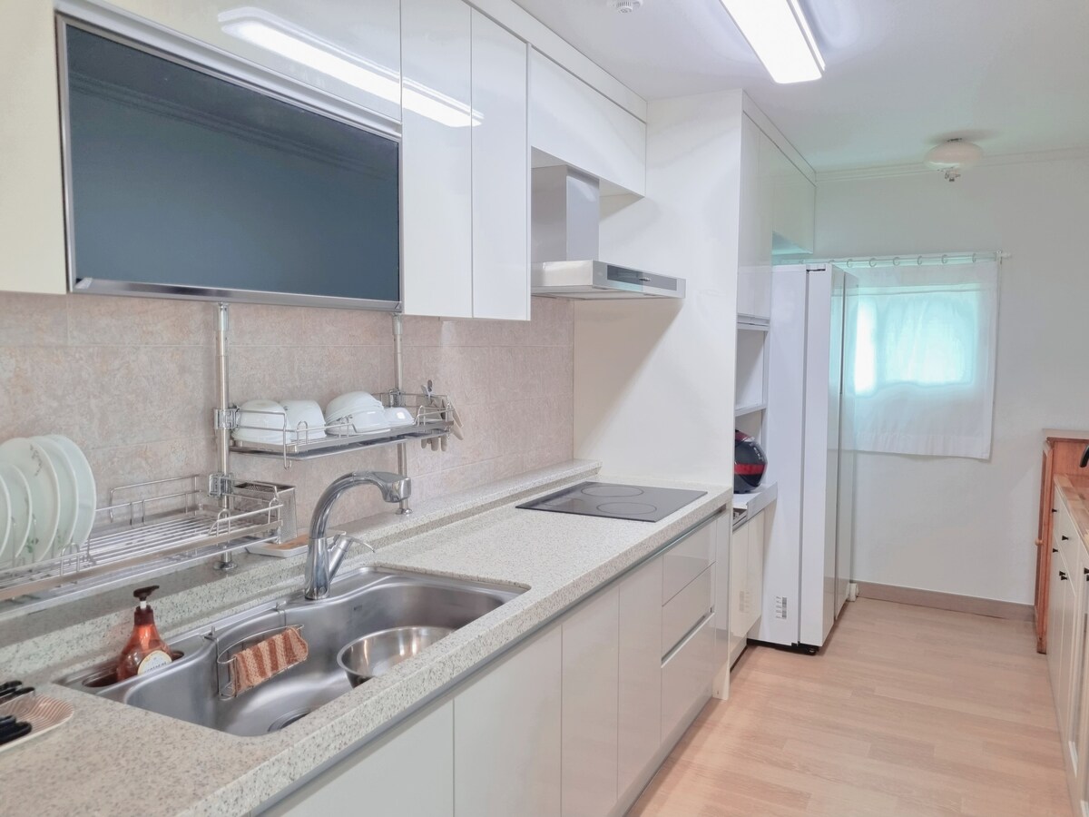 @ stay8usanhang是俯瞰釜山港的空間,經過精心設計,提供舒適和靈感。 從音樂和香水到氛圍、室內和寢具,每一個細節都經過精心策劃,以提升您的住宿體驗。 -與釜山站相連的天橋(步行5分鐘) -1張超級加大雙人牀, 3張超級單人牀 海景浴缸(水療就緒) -設備齊全/非常適合家庭旅客 配備Netflix、YouTube、OTT和廣播頻道的50英寸大電視 Bang & Olufsen演講者