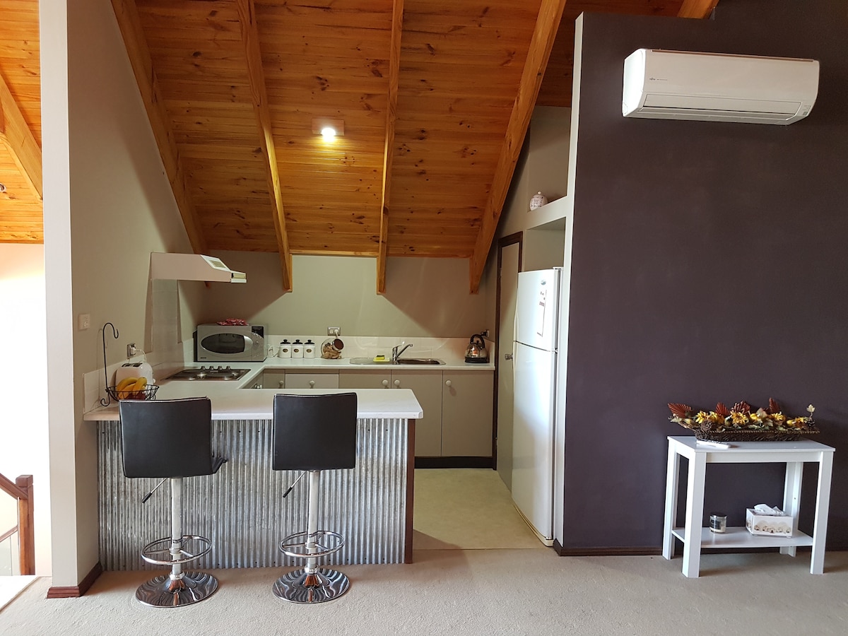 我們的獨立單間公寓是我們房源的珍珠,配有舒適的雙人床、起居區、您自己的浴室和小廚房。在您的露臺上,您會發現一個烤肉架,為您提供便利。住宿包含WiFi和停車位。 令人驚嘆的山景、鳥類和樹木讓您度過難忘的住宿時光。 我們住在一個安靜的社區,坐落在Cambewarra山的山腳下,位於風景如畫的Berry & Kangaroo Valley村莊之間。