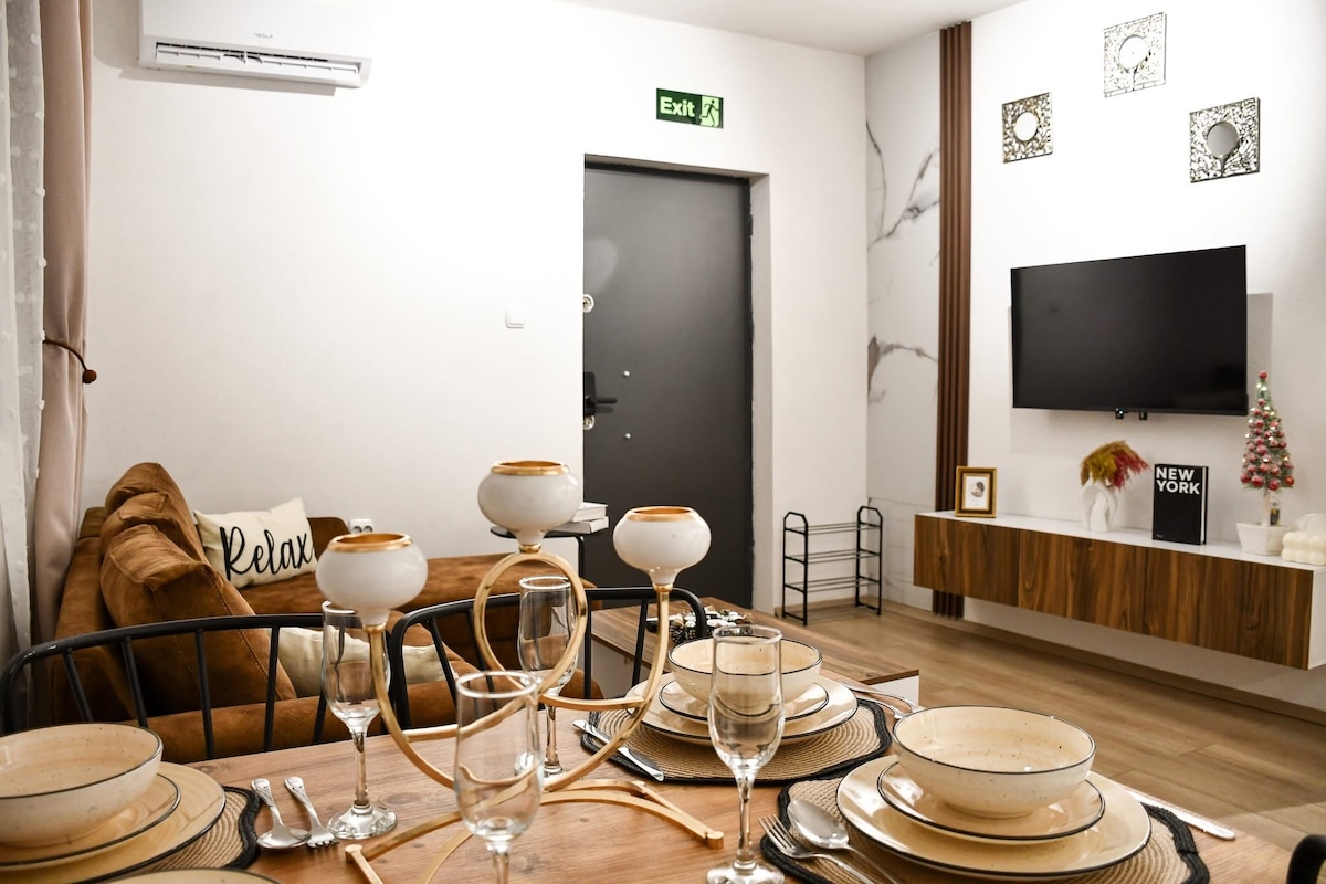 入住這間位處中心地段卻安靜的房源,讓自己的旅程輕鬆無負擔。Tolevski Apartments 現代化且獨異。全新,位於安靜的區域,步行 3 分鐘即可抵達市中心。廚房設備齊全。(洗碗機、微波爐、烤麵包機、烤箱、冰箱、咖啡機(dolce gusto)和電熱水壺。浴室配有洗衣機和吹風機。有2臺電視和2臺空調節器。獨立臥室,配有陽臺、免費WiFi、免費停車。祝您住宿愉快!