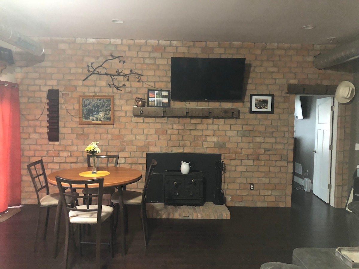 Barn Quilt Bungalow -從窗戶望出去即可看到馬匹! 包括1間臥室(雙人床)、1張拉出式床墊(雙人床)、1間浴室(僅淋淋浴)、客廳、廚房、暖氣和空調。 步行小徑或步行前往酒莊。 最多可入住2位房客。 您可以新增第三位房客,每晚30美元。 無論住宿時間有多長,房客都不得帶其他人入住。如果您超過最大入住人數,我們將立即聯絡Airbnb。 禁止兒童、動物或服務性動物(過敏/健康危害)。