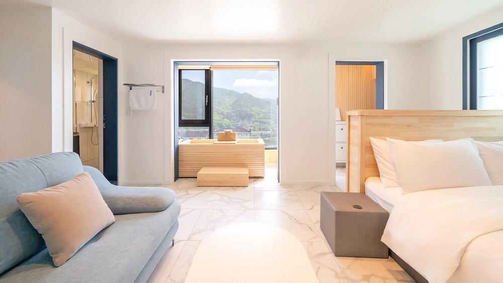 房源位於京畿道Bomun Tourist Complex和Bulguksa的道路上,距離Bomun Complex有7分鐘車程,距離Bulguksa有5分鐘車程,位於一個前往京畿道市中心旅遊景點和Yangnam以及Gampo (海區站)大約20分鐘即可抵達的地區。 舒適的房子是一棟現代風格的複式公寓,是情侶使用的絕佳空間。 享受山的放鬆景色。來自私人露臺和充滿情感的房間內的Toham:) 這是一個雙人住宿,包括嬰幼兒,不允許其他人入住。 *泳池是共用室外泳池,僅在夏季開放,並非加熱泳池。 *我們每天更換炊具(羽絨被套、枕套)。 *我們為2人準備了一個20000韓元的戶外電烤架,因此允許在個人露臺上燒烤。 *還有一件事,我會告訴你院子裡有貓。 如果您因為是熱愛人的孩子而對動物過敏或害怕,請謹慎預訂。