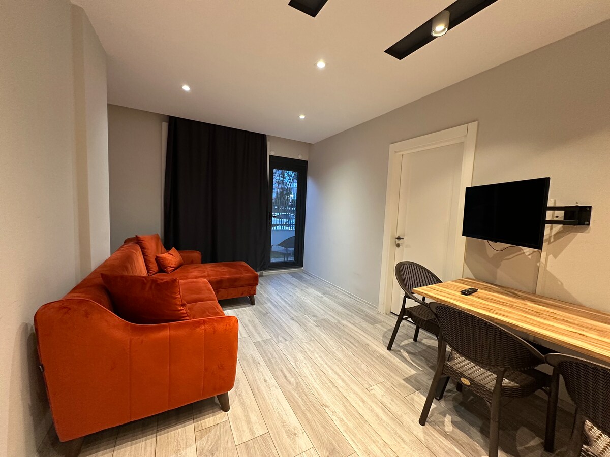 我們的套房為您提供50平方公尺的寬敞起居空間。我們共有 16 間套房。所有套房的臥室都有一張加大雙人床,客廳有2張沙發,可轉換成床。所有套房均設有陽臺、迷你吧、免費WiFi網路連線、空調、智慧電視、保險箱、熨斗和獨立浴室。後院有一個漂亮的花園,我們的套房提供優質舒適的住宿。