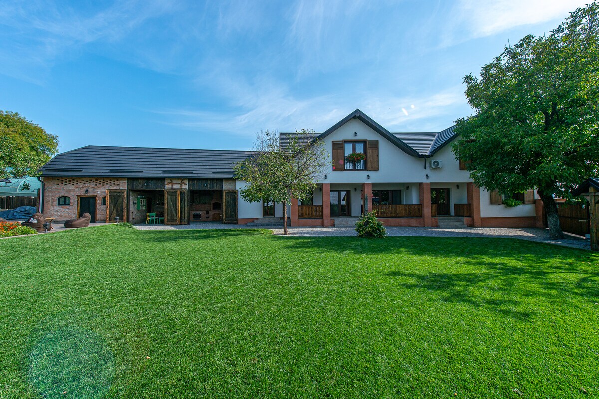 我們的住宿是一個5間臥室的度假屋,位於特蘭西瓦尼亞的中心,哈爾吉塔縣的一個安靜的小村莊,大凱德,客人可以在大自然中體驗寧靜與安寧。 住宿提供寬敞的庭院、封閉式停車場、室外水療室、鹽缸和桑拿房(價格不包括使用費用)、兒童遊樂場、室外露臺、燒烤設施和自行車。這個地方適合家庭和朋友。