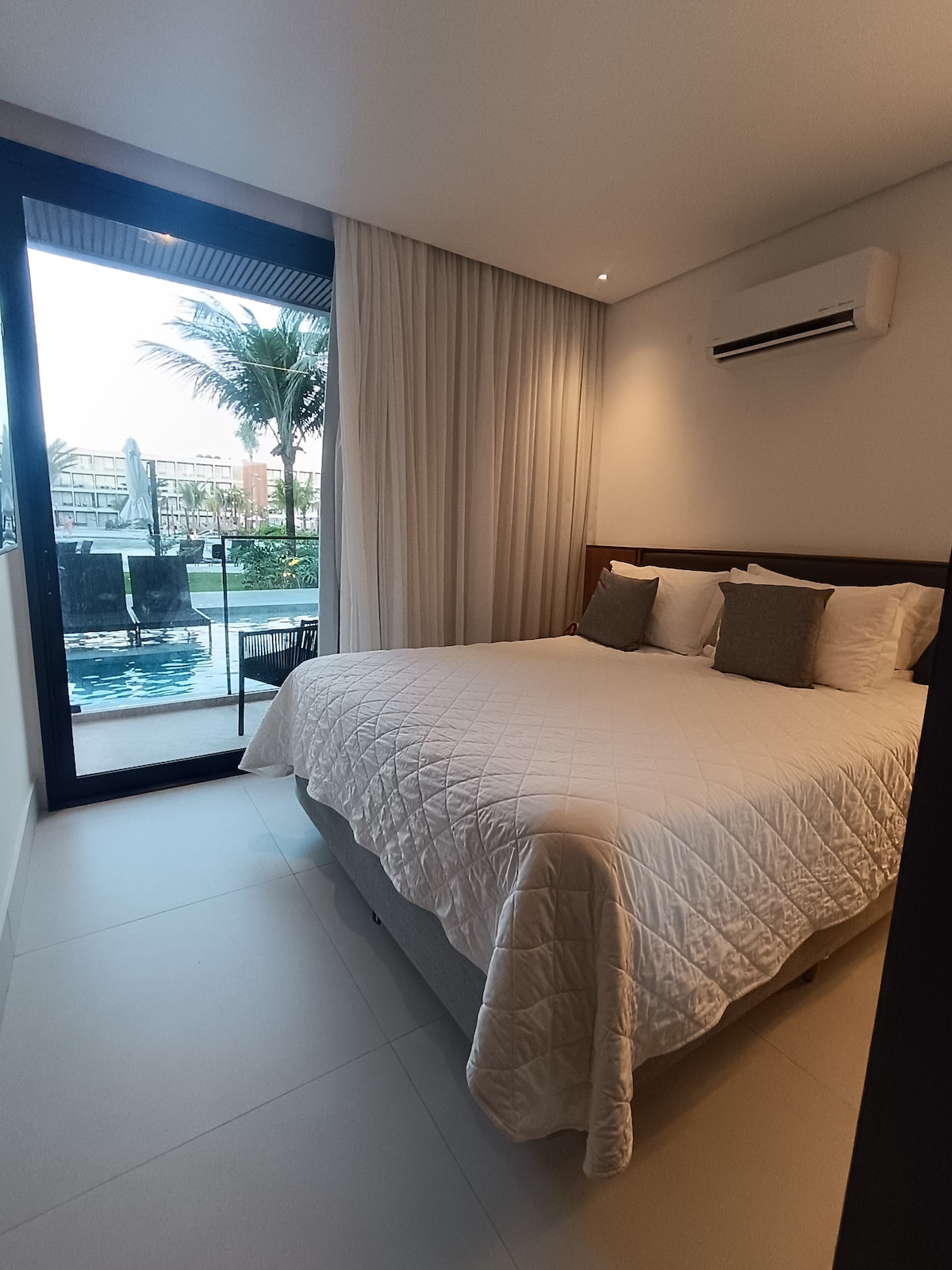 Curta uma experiência luxuosa ao ficar neste lugar especial.quarto com cama de casal e sala com sofá cama pra 2 pessoas,tv e ar condicionado em todos os cômodos,Resort novo e de altíssima qualidade,são várias piscinas para desfrute de sua família,pé na areia com piscinas naturais e passeios incríveis