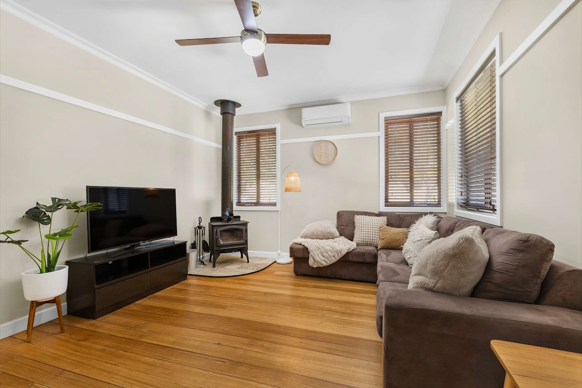這座美麗的地面別墅提供私人精品住宿,環境放鬆。 露臺可欣賞綠意盎然的花園,直達房源正對面的Quarry Street Reserve。 步行5分鐘即可抵達高街,您可以找到大都會酒店(親切地稱為Cosmo)、Trentham酒店、Annie Smither 's Du Fermier餐廳和一系列令人愉快的商店、咖啡廳和著名的紅鬍子麵包店。