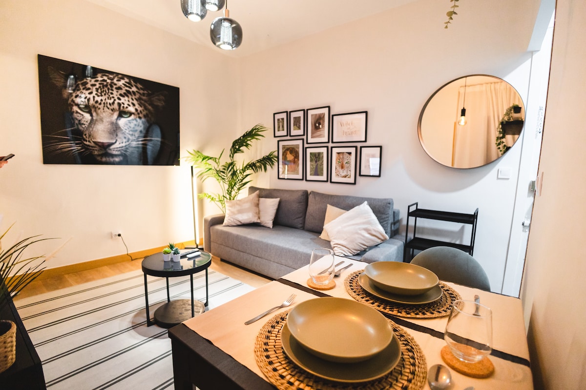 這間優雅的公寓提供功能齊全、設計精美的空間,讓您的住宿盡可能舒適。 配有獨立暖氣、可調式空調、智慧電視、高速Wi-Fi和設備齊全的廚房。 位於馬德里最具活力和最正宗的街區之一拉拉丁娜市中心,四周有歷史悠久的市場、劇院、藝術畫廊、迷人的咖啡廳和繁華的文化景觀。